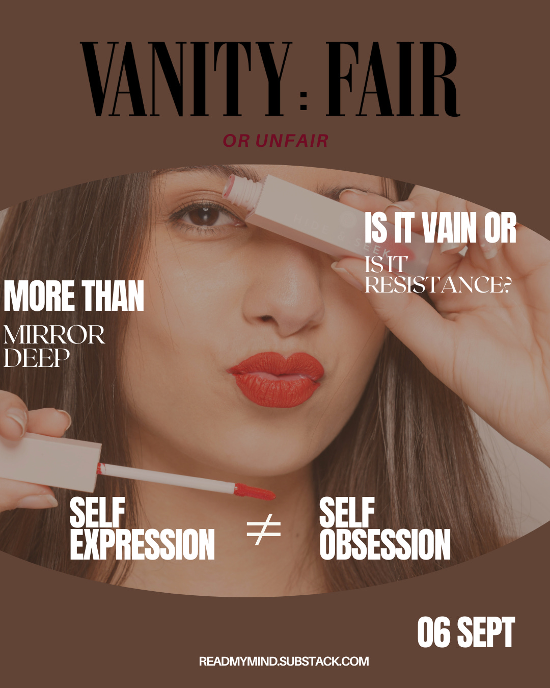 But somewhere along the way, the word shifted. Vanity became more about appearances, people who seem to care too much about how they look. And yet, what if what we call “vanity” is sometimes just self-expression? What if it’s joy? Or even survival?